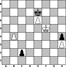 game notation in PGN-format [Event "Make myChess great again...."] [Site "www.myChess.de"] [Date "2017.02.11"] [Round "1"] [White "lotchi"] [Black "Naunhofer"] [ECO "A06"] [WhitemyELO "1172"] [BlackmyELO "1609"] [Result "0-1"] [TimeControl "10/864000"] [WhiteDays "58"] [BlackDays "60"] [MyChessNo "106894"] 1. Nf3 d5 2. d4 Nf6 3. Nc3 e6 4. Bg5 Be7 5. Bxf6 Bxf6 6. e3 Bd7 7. Bd3 Bc6 8. O-O Nd7 9. a3 O-O 10. Qd2 g6 11. b4 Nb6 12. a4 Qe7 13. a5 Nc4 14. Bxc4 dxc4 15. b5 Bxf3 16. gxf3 Rfc8 17. f4 a6 18. bxa6 Rxa6 19. Ne4 b6 20. Nxf6+ Qxf6 21. c3 Rca8 22. Qe2 b5 23. Qf3 Qe7 24. Qb7 Qd7 25. Rfb1 Rxa5 26. Qxa8+ Rxa8 27. Rxa8+ Kg7 28. Ra5 c6 29. Rba1 Qd5 30. Ra7 c5 31. dxc5 Qxc5 32. Rb7 Qd5 33. Raa7 Qf5 34. Kg2 h5 35. h3 h4 36. Rc7 g5 37. fxg5 Qxg5+ 38. Kf1 Qf5 39. Kg2 Kg6 40. Rxf7 Qxf7 41. Rxf7 Kxf7 42. Kf3 e5 43. e4 Kf6 44. Ke3 Kg5 45. f3 Kf6 46. f4 exf4+ 47. Kxf4 Ke6 48. e5 Ke7 49. Kf5 b4 50. cxb4 c3 51. e6 c2 0-1 position notation in FEN-format 8/4k3/4P3/5K2/1P5p/7P/2p5/8 - - - 0 52 Captured white pieces: Captured black pieces: Click on a captured piece in order to display the desired move!