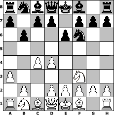 game notation in PGN-format [Event "Winter 2018"] [Site "www.myChess.de"] [Date "2018.01.10"] [Round "2"] [White "HPB2005"] [Black "jeremyt"] [ECO "E12"] [WhitemyELO "1899"] [BlackmyELO "2125"] [Result "1-0"] [TimeControl "10/2592000"] [WhiteDays "27"] [BlackDays "00"] [MyChessNo "111024"] 1. d4 Nf6 2. c4 e6 3. Nf3 b6 4. a3 1-0 position notation in FEN-format rnbqkb1r/p1pp1ppp/1p2pn2/8/2PP4/P4N2/1P1PPPPP/RNBQKB1R - KQkq - 0 4 Captured white pieces: Captured black pieces: Click on a captured piece in order to display the desired move!