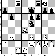 game notation in PGN-format [Event "Winter 2018"] [Site "www.myChess.de"] [Date "2018.01.10"] [Round "2"] [White "Grubengeist"] [Black "jeremyt"] [ECO "E15"] [WhitemyELO "2086"] [BlackmyELO "2125"] [Result "1/2-1/2"] [TimeControl "10/2592000"] [WhiteDays "69"] [BlackDays "48"] [MyChessNo "111033"] 1. d4 Nf6 2. c4 e6 3. Nf3 b6 4. g3 Bb4+ 5. Bd2 Be7 6. Bg2 c6 7. O-O O-O 8. Qc2 d5 9. Rd1 Nbd7 10. b3 Ba6 11. Bc3 Rc8 12. Bb2 c5 13. Nc3 Bb7 14. dxc5 Bxc5 15. Nd4 Qe7 16. e3 Ne5 17. cxd5 Nxd5 18. Nxd5 Bxd5 19. Qe2 Bxg2 20. Kxg2 f6 21. Rac1 Bxd4 22. Bxd4 1/2-1/2 position notation in FEN-format 2r2rk1/p3q1pp/1p2pp2/4n3/3B4/1P2P1P1/P3QPKP/2RR4 - - - 0 22 Captured white pieces: Captured black pieces: Click on a captured piece in order to display the desired move!