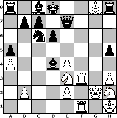 game notation in PGN-format [Event "Fr"] [Site "www.myChess.de"] [Date "2012.03.14"] [Round "1"] [White "Erich"] [Black "Svetlana"] [ECO "C54"] [WhitemyELO "2035"] [BlackmyELO "1767"] [Result "1-0"] [TimeControl "10/2592000"] [WhiteDays "30"] [BlackDays "30"] [MyChessNo "80632"] 1. e4 e5 2. Nf3 Nc6 3. Bc4 Bc5 4. c3 Nf6 5. d3 O-O 6. O-O Bb6 7. Bg5 h6 8. Bh4 d6 9. h3 g5 10. Bg3 Nh5 11. Bh2 Nf4 12. Nbd2 Qf6 13. Bxf4 Qxf4 14. Nh2 a5 15. Kh1 Ne7 16. Bb3 Kg7 17. Nc4 Bc5 18. a4 h5 19. d4 exd4 20. cxd4 Ba7 21. Ne3 g4 22. Bc2 gxh3 23. Rg1 Rh8 24. gxh3+ Kf8 25. Rg3 Qxf2 26. Rf3 Qh4 27. Bb3 Ke8 28. Qc2 Nc6 29. Bxf7+ Kd8 30. Qg2 Bxd4 31. Bg8 Qe7 32. Raf1 1-0 position notation in FEN-format r1bk2Br/1pp1q3/2np4/p6p/P2bP3/4NR1P/1P2P1QN/5R1K - - - 3 32 Captured white pieces: ![]() ![]() ![]() ![]() ![]() ![]() ![]() ![]() ![]() ![]() ![]() ![]() ![]() ![]() ![]() Captured black pieces: ![]() ![]() ![]() ![]() ![]() ![]() ![]() ![]() ![]() ![]() ![]() ![]() ![]() ![]() ![]() Click on a captured piece in order to display the desired move!