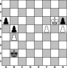 game notation in PGN-format [Event "Wrixum - Open die I."] [Site "www.myChess.de"] [Date "2004.12.11"] [Round "1"] [White "rikilatic"] [Black "Wormatia08"] [ECO "B20"] [WhitemyELO "1563"] [BlackmyELO "1474"] [Result "1-0"] [TimeControl "10/2592000"] [WhiteDays "30"] [BlackDays "25"] [MyChessNo "8750"] 1. e4 c5 2. Bc4 d6 3. Qh5 e6 4. d3 Nf6 5. Qf3 Be7 6. Nh3 Nc6 7. Nc3 O-O 8. Qe2 a6 9. Bf4 e5 10. Be3 b5 11. Bd5 Nxd5 12. Nxd5 Bb7 13. a3 Na5 14. Qg4 Bxd5 15. exd5 c4 16. Bh6 Bf6 17. dxc4 Nxc4 18. b3 Qa5+ 19. b4 Qd8 20. Bg5 Bxg5 21. Nxg5 h6 22. h4 Qf6 23. Ne4 Qf4 24. Qxf4 exf4 25. O-O Rfe8 26. Rfe1 Rac8 27. f3 Ne3 28. Nxd6 Nxc2 29. Rxe8+ Rxe8 30. Ra2 Rd8 31. Rxc2 Rxd6 32. Rd2 Kf8 33. Kf2 Ke7 34. g3 fxg3+ 35. Kxg3 Kf6 36. Rc2 Ke5 37. Rc7 Kxd5 38. Rxf7 Rg6+ 39. Kf4 Kc4 40. Re7 Kb3 41. Re3+ Kc4 42. Kf5 Rf6+ 43. Kg4 Kd4 44. Re8 Kc4 45. f4 Kb3 46. Re3+ Kc4 47. f5 Kd5 48. h5 Kd4 49. Re6 Kc4 50. Kf4 Kb3 51. Ke5 Kxa3 52. Rxf6 gxf6+ 53. Kxf6 Kb2 54. Kg6 1-0 position notation in FEN-format 8/8/p5Kp/1p3P1P/1P6/8/1k6/8 - - - 2 54 Captured white pieces: Captured black pieces: Click on a captured piece in order to display the desired move!