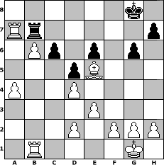 game notation in PGN-format [Event "Schnelle Partien"] [Site "www.myChess.de"] [Date "2014.08.23"] [Round "1"] [White "FrankB"] [Black "Mattheus"] [ECO "D02"] [WhitemyELO "1693"] [BlackmyELO "1169"] [Result "1-0"] [TimeControl "10/864000"] [WhiteDays "09"] [BlackDays "10"] [MyChessNo "95576"] 1. d4 d5 2. Nf3 Nc6 3. Bf4 Nf6 4. e3 Bg4 5. Be2 e6 6. O-O Bb4 7. a3 Ba5 8. b4 Bb6 9. c4 O-O 10. c5 Bxc5 11. bxc5 Rbxe8 12. Nc3 Ne4 13. Nb5 Re7 14. Qc2 a6 15. Nc3 Nxc3 16. Qxc3 a5 17. Rab1 Qc8 18. Qb2 Ra7 19. Ne5 Nxe5 20. Bxe5 Bxe2 21. Qxe2 c6 22. Qg4 g6 23. Qg5 Ree8 24. Qh6 f6 25. Bxf6 Qd7 26. Be5 b5 27. cxb6 Rb7 28. Rfc1 Re7 29. a4 Qe8 30. Rc5 Ref7 31. Rxa5 Qf8 32. Qxf8+ Rxf8 33. Ra7 1-0 position notation in FEN-format 6k1/Rr5p/1Pp1p1p1/3pB3/P2P4/4P3/3P1PPP/1R4K1 - - - 1 33 Captured white pieces: ![]() ![]() ![]() ![]() ![]() ![]() ![]() ![]() ![]() ![]() ![]() ![]() ![]() ![]() ![]() Captured black pieces: ![]() ![]() ![]() ![]() ![]() ![]() ![]() ![]() ![]() ![]() ![]() ![]() ![]() ![]() ![]() Click on a captured piece in order to display the desired move!