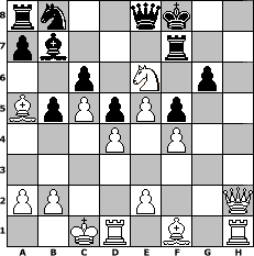 game notation in PGN-format [Event "In diesem Sommer gehts noch mal heiss her"] [Site "www.myChess.de"] [Date "2024.07.20"] [Round "1"] [White "larlinde"] [Black "Seneca"] [ECO "B07"] [WhitemyELO "2147"] [BlackmyELO "1553"] [Result "1-0"] [TimeControl "10/2592000"] [WhiteDays "87"] [BlackDays "90"] [MyChessNo "132129"] 1. e4 d6 2. d4 Nf6 3. Nc3 c6 4. f4 e6 5. Nf3 Be7 6. e5 Nd5 7. Ne4 O-O 8. Bd2 b6 9. c4 Nc7 10. Neg5 d5 11. Qc2 g6 12. O-O-O Bb7 13. c5 b5 14. h4 f5 15. h5 Qe8 16. hxg6 hxg6 17. g4 Bxg5 18. Nxg5 Rf7 19. gxf5 exf5 20. Ba5 Ne6 21. Qh2 Kf8 22. Nxe6+ 1-0 position notation in FEN-format rn2qk2/pb3r2/2p1N1p1/BpPpPp2/3P1P2/8/PP2P2Q/2KR1B1R - - - 0 22 Captured white pieces: Captured black pieces: Click on a captured piece in order to display the desired move!