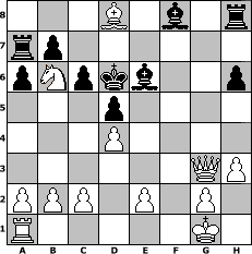 game notation in PGN-format [Event "Svetlana Open 2012"] [Site "www.myChess.de"] [Date "2012.03.22"] [Round "1"] [White "Grubengeist"] [Black "Neo111"] [ECO "C34"] [WhitemyELO "1895"] [BlackmyELO "1132"] [Result "1-0"] [TimeControl "10/2592000"] [WhiteDays "28"] [BlackDays "28"] [MyChessNo "80785"] 1. e4 e5 2. f4 exf4 3. Nf3 Qf6 4. Nc3 c6 5. e5 Qf5 6. d4 d5 7. h3 Nd7 8. Bd3 Qe6 9. O-O a6 10. Ng5 Qe7 11. Bxf4 h6 12. Nxf7 Qxf7 13. e6 Qxe6 14. Re1 Ne5 15. Rxe5 Qxe5 16. Bxe5 Ne7 17. Na4 Ra7 18. Nb6 Bd7 19. Qh5+ g6 20. Bxg6+ Nxg6 21. Qxg6+ Ke7 22. Bf6+ Kd6 23. Bd8+ Be6 24. Qg3# 1-0 position notation in FEN-format 3B1b1r/rp6/pNpkb2p/3p4/3P4/6QP/PPP1P1P1/R5K1 - - - 6 24 Captured white pieces: ![]() ![]() ![]() ![]() ![]() ![]() ![]() ![]() ![]() ![]() ![]() ![]() ![]() ![]() ![]() Captured black pieces: ![]() ![]() ![]() ![]() ![]() ![]() ![]() ![]() ![]() ![]() ![]() ![]() ![]() ![]() ![]() Click on a captured piece in order to display the desired move!
