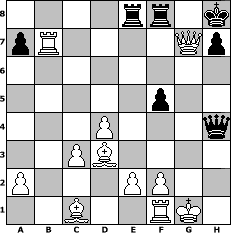 | game notation in PGN-format [Event "II. Intergalaktische Meisterschaft"] [Site "www.myChess.de"] [Date "2008.09.08"] [Round "1"] [White "HenrySchinasky"] [Black "werderfan"] [ECO "C42"] [WhitemyELO "2019"] [BlackmyELO "1573"] [Result "1-0"] [TimeControl "10/2592000"] [WhiteDays "30"] [BlackDays "30"] [MyChessNo "47845"] 1. e4 e5 2. Nf3 Nf6 3. Nxe5 d6 4. Nf3 Nxe4 5. d4 d5 6. Bd3 Bd6 7. O-O O-O 8. c4 c6 9. cxd5 cxd5 10. Nc3 Nxc3 11. bxc3 Bg4 12. Rb1 Qd7 13. h3 Bxh3 14. gxh3 Qxh3 15. Ne5 f5 16. Qf3 Qh4 17. Qxd5+ Kh8 18. Qxd6 Nc6 19. Rxb7 Nxe5 20. Qxe5 Rae8 21. Qxg7# 1-0 position notation in FEN-format 4rr1k/pR4Qp/8/5p2/3P3q/2PB4/P3PP2/2B2RK1 - - - 0 21 Captured white pieces:                              Captured black pieces:                               Click on a captured piece in order to display the desired move!
