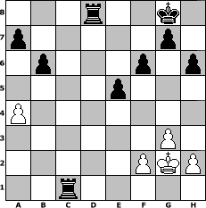 game notation in PGN-format [Event "startup 2006"] [Site "www.myChess.de"] [Date "2006.01.01"] [Round "1"] [White "icke"] [Black "MStr"] [ECO "D02"] [WhitemyELO "1384"] [BlackmyELO "1613"] [Result "0-1"] [TimeControl "10/3456000"] [WhiteDays "39"] [BlackDays "37"] [MyChessNo "21276"] 1. d4 d5 2. Nf3 Nf6 3. Nc3 Bf5 4. e3 h6 5. Bd3 Bxd3 6. cxd3 e6 7. Ne5 Nbd7 8. Qa4 c6 9. Qb3 Qc7 10. O-O Bd6 11. e4 Nxe5 12. dxe5 Bxe5 13. g3 O-O 14. d4 Bxd4 15. Bf4 Qd7 16. Qb4 Bxc3 17. bxc3 Nxe4 18. Qd4 b6 19. Rfe1 c5 20. Qe5 f6 21. Qc7 Qxc7 22. Bxc7 Rfc8 23. Bf4 e5 24. Be3 Nxc3 25. a3 d4 26. Bd2 c4 27. a4 Nd5 28. Reb1 c3 29. Be1 d3 30. Rb3 d2 31. Bxd2 cxd2 32. Rbb1 Nc3 33. Rd1 Nxd1 34. Rxd1 Rc1 35. Rxc1 dxc1=Q+ 36. Kg2 Rd8 0-1 position notation in FEN-format 3r2k1/p5p1/1p3p1p/4p3/P7/6P1/5PKP/2r5 - - - 2 37 Captured white pieces: Captured black pieces: Click on a captured piece in order to display the desired move!