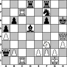 game notation in PGN-format [Event "Mannschaftsturnier 2006"] [Site "www.myChess.de"] [Date "2006.05.18"] [Round "1"] [Board "4"] [White "Jens1943"] [Black "OwainGwynedd"] [ECO "C50"] [WhitemyELO "1439"] [BlackmyELO "1536"] [Result "1/2-1/2"] [TimeControl "10/2592000"] [WhiteDays "27"] [BlackDays "29"] [MyChessNo "25441"] 1. e4 e5 2. Nf3 Nc6 3. Bc4 Nh6 4. Nc3 a6 5. a4 b6 6. O-O Be7 7. d3 Ng4 8. Nd5 h6 9. Nxe7 Qxe7 10. Be3 d6 11. Bd5 Bb7 12. Bd2 Nf6 13. Re1 O-O 14. d4 Nxd5 15. exd5 Nd8 16. dxe5 dxe5 17. Rxe5 Qd7 18. c4 a5 19. Bxh6 f6 20. Bxg7 Qxg7 21. Re3 Nf7 22. Re7 Qg4 23. h3 Qxc4 24. Rc1 Qa2 25. Rexc7 Bxd5 26. Qd3 Rad8 27. Qg6+ Kh8 28. Qh5+ Kg7 29. Qg4+ Kh6 30. Qh4+ Kg6 31. Qg4+ Kh6 32. Qh4+ Kg6 33. Qg4+ Kh6 34. Qh4+ Kg6 35. Qg4+ Kh6 36. Qh4+ 1/2-1/2 position notation in FEN-format 3r1r2/2R2n2/1p3p1k/p2b4/P6Q/5N1P/qP2PPP1/2R3K1 - - - 21 36 Captured white pieces: Captured black pieces: Click on a captured piece in order to display the desired move!