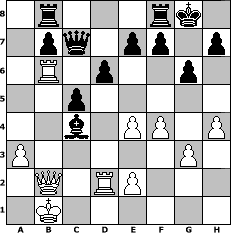 game notation in PGN-format [Event "Winterspiele"] [Site "www.myChess.de"] [Date "2008.12.29"] [Round "1"] [White "ujack1961"] [Black "sprinterde"] [ECO "B07"] [WhitemyELO "1688"] [BlackmyELO "1646"] [Result "0-1"] [TimeControl "10/864000"] [WhiteDays "28"] [BlackDays "28"] [MyChessNo "51122"] 1. e4 d6 2. d4 g6 3. f4 c6 4. c4 Bg7 5. Be3 Nf6 6. Bd3 Ng4 7. Qd2 Nxe3 8. Qxe3 Qb6 9. Nd2 Bxd4 10. Qf3 Bxg1 11. O-O-O Be3 12. Kb1 Bd4 13. Nb3 Bg7 14. Rhe1 Na6 15. Qe3 Qc7 16. g3 Nb4 17. a3 Nxd3 18. Rxd3 a5 19. Red1 Bg4 20. R1d2 a4 21. Nd4 O-O 22. h4 Rab8 23. b4 axb3 24. Rxb3 Bxd4 25. Qxd4 Be6 26. Rb6 c5 27. Qb2 Bxc4 0-1 position notation in FEN-format 1r3rk1/1pq1pp1p/1R1p2p1/2p5/2b1PP1P/P5P1/1Q1RP3/1K6 - - - 0 28 Captured white pieces: Captured black pieces: Click on a captured piece in order to display the desired move!