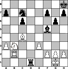 game notation in PGN-format [Event "Ohne techn. Hilfsmittel..."] [Site "www.myChess.de"] [Date "2013.02.13"] [Round "1"] [White "FrankB"] [Black "Steffi"] [ECO "A48"] [WhitemyELO "1572"] [BlackmyELO "1537"] [Result "1/2-1/2"] [TimeControl "10/864000"] [WhiteDays "16"] [BlackDays "14"] [MyChessNo "86530"] 1. d4 Nf6 2. Nf3 g6 3. c4 Bg7 4. Nc3 O-O 5. e3 e6 6. Be2 d5 7. O-O c6 8. a3 Re8 9. b4 Nbd7 10. Bb2 dxc4 11. Bxc4 Nd5 12. Qb3 N7b6 13. Be2 Nxc3 14. Bxc3 Nd5 15. Bb2 Qc7 16. Rac1 Kh8 17. b5 Bd7 18. bxc6 bxc6 19. Nd2 Rab8 20. Qc2 Rec8 21. Ba6 Rd8 22. Rb1 e5 23. dxe5 Bxe5 24. Bxe5+ Qxe5 25. Rb3 Nc7 26. Bc4 Be6 27. Rfb1 Rxb3 28. Nxb3 Bf5 29. Qb2 Qxb2 30. Rxb2 Rd1+ 1/2-1/2 position notation in FEN-format 7k/p1n2p1p/2p3p1/5b2/2B5/PN2P3/1R3PPP/3r2K1 - - - 1 31 Captured white pieces: Captured black pieces: Click on a captured piece in order to display the desired move!