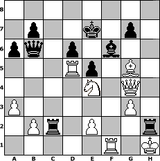 game notation in PGN-format [Event "Es wurde noch etwas sommerlich."] [Site "www.myChess.de"] [Date "2009.08.09"] [Round "1"] [White "Caligula"] [Black "Winston"] [ECO "B20"] [WhitemyELO "1433"] [BlackmyELO "1387"] [Result "0-1"] [TimeControl "10/2592000"] [WhiteDays "30"] [BlackDays "30"] [MyChessNo "58190"] 1. e4 c5 2. d4 cxd4 3. c3 dxc3 4. Nxc3 Nc6 5. Nf3 Qc7 6. Bc4 e6 7. O-O Nf6 8. Nb5 Qb8 9. g3 Nxe4 10. Bf4 d6 11. Re1 Nxf2 12. Kxf2 e5 13. Nbd4 a6 14. Nb3 Bg4 15. Bc1 Be7 16. Bxf7+ Kxf7 17. Ng5+ Bxg5 18. Qxg4 h6 19. Kg2 Bf6 20. Rf1 Rg8 21. Be3 Qd8 22. Nd2 Ke8 23. Bxh6 Ke7 24. Be3 Rc8 25. Rad1 Nb4 26. a3 Nd5 27. Bg5 Qb6 28. Ne4 Rc2+ 29. Kh1 Rh8 30. Rxd5 Rxh2# 0-1 position notation in FEN-format 8/1p2k1p1/pq1p1b2/3Rp1B1/4N1Q1/P5P1/1Pr1P2r/5R1K - - - 0 31 Captured white pieces: Captured black pieces: Click on a captured piece in order to display the desired move!