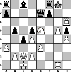 game notation in PGN-format [Event "7er2"] [Site "www.myChess.de"] [Date "2015.11.13"] [Round "1"] [White "sprinterde"] [Black "Steffi"] [ECO "D50"] [WhitemyELO "1766"] [BlackmyELO "1517"] [Result "1-0"] [TimeControl "10/3456000"] [WhiteDays "119"] [BlackDays "105"] [MyChessNo "101213"] 1. d4 d5 2. c4 e6 3. Nc3 Nf6 4. Bg5 c6 5. cxd5 exd5 6. e3 Be7 7. Bd3 Nbd7 8. Nf3 h6 9. Bxf6 Nxf6 10. Qc2 O-O 11. O-O-O Bb4 12. h3 Qa5 13. a3 Bxc3 14. Qxc3 Qc7 15. g4 b6 16. Ne5 c5 17. f4 c4 18. g5 hxg5 19. fxg5 Nh5 20. Rhg1 Qd6 21. Be2 g6 22. Bxh5 gxh5 23. h4 Bb7 24. Rdf1 b5 25. Rf6 Qe7 26. Qc2 Bc8 27. Rh6 1-0 position notation in FEN-format r1b2rk1/p3qp2/7R/1p1pN1Pp/2pP3P/P3P3/1PQP4/2K3R1 - - - 5 27 Captured white pieces: Captured black pieces: Click on a captured piece in order to display the desired move!