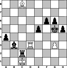 game notation in PGN-format [Event "Schach dem Nikolaus VII"] [Site "www.myChess.de"] [Date "2020.11.23"] [Round "1"] [White "boeserWatz"] [Black "kalle"] [ECO "B80"] [WhitemyELO "1264"] [BlackmyELO "1529"] [Result "0-1"] [TimeControl "10/2592000"] [WhiteDays "29"] [BlackDays "30"] [MyChessNo "119965"] 1. e4 c5 2. Nf3 d6 3. d4 cxd4 4. Nxd4 Nf6 5. Nc3 e6 6. g3 Be7 7. Qe2 Nc6 8. Nxc6 bxc6 9. Bd2 Bb7 10. O-O-O a5 11. e5 Nd5 12. Nxd5 cxd5 13. Qb5+ Qd7 14. Qxd7+ Kxd7 15. exd6 Bxd6 16. Bh3 Ke7 17. Bc3 f6 18. f4 d4 19. Rhe1 Bxf4+ 20. Bd2 Bxd2+ 21. Rxd2 e5 22. Bf5 g6 23. Bg4 Rhd8 24. Be2 Rac8 25. Bg4 Rc5 26. c3 dxc3 27. bxc3 Rxc3+ 28. Kd1 Rxd2+ 29. Kxd2 Ra3 30. Ra1 Bd5 31. Kc1 Rxa2 32. Rb1 h5 33. Bc8 a4 34. Rb5 Bb3 35. Rc5 Rxh2 36. Rc3 Kd6 37. Rd3+ Ke7 38. Rd7+ Kf8 39. Rd8+ Kg7 40. Rd7+ Kh6 41. Rd8 Kg5 42. Rd3 Rc2+ 0-1 position notation in FEN-format 2B5/8/5pp1/4p1kp/p7/1b1R2P1/2r5/2K5 - - - 14 43 Captured white pieces: ![]() ![]() ![]() ![]() ![]() ![]() ![]() ![]() ![]() ![]() ![]() ![]() ![]() ![]() ![]() Captured black pieces: ![]() ![]() ![]() ![]() ![]() ![]() ![]() ![]() ![]() ![]() ![]() ![]() ![]() ![]() ![]() Click on a captured piece in order to display the desired move!