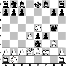 game notation in PGN-format [Event "K"] [Site "www.myChess.de"] [Date "2013.10.15"] [Round "1"] [White "lasker"] [Black "Lohl"] [ECO "C34"] [WhitemyELO "1138"] [BlackmyELO "1736"] [Result "0-1"] [TimeControl "10/3456000"] [WhiteDays "07"] [BlackDays "36"] [MyChessNo "90693"] 1. e4 e5 2. f4 exf4 3. Nf3 Ne7 4. d4 d5 5. Bxf4 dxe4 6. Ne5 f6 7. Nc4 Nd5 8. Bg3 f5 9. Be2 f4 10. Ne5 Ne3 11. Qd2 Nxg2+ 12. Kf1 Ne3+ 13. Kf2 Qg5 0-1 position notation in FEN-format rnb1kb1r/ppp3pp/8/4N1q1/3Ppp2/4n1B1/PPPQBK1P/RN5R - kq - 4 14 Captured white pieces: Captured black pieces: Click on a captured piece in order to display the desired move!