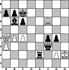 game notation in PGN-format [Event "unter uns"] [Site "www.myChess.de"] [Date "2012.03.11"] [Round "1"] [White "Caligula"] [Black "borsti"] [ECO "C36"] [WhitemyELO "1361"] [BlackmyELO "1208"] [Result "0-1"] [TimeControl "10/864000"] [WhiteDays "38"] [BlackDays "40"] [MyChessNo "80525"] 1. e4 e5 2. f4 exf4 3. Nf3 d5 4. exd5 Qxd5 5. Nc3 Qd8 6. d4 Bd6 7. Bd3 Bg4 8. O-O Bxf3 9. Rxf3 g5 10. h3 Nf6 11. Be4 c6 12. a3 Qe7 13. Bf5 Nbd7 14. Qf1 Nd5 15. Bd2 O-O-O 16. Re1 Qf6 17. Be4 Nxc3 18. Bxc3 Qh6 19. Qc4 Nb6 20. Qxf7 Rhf8 21. Qb3 Rde8 22. Bf5+ Kc7 23. Rxe8 Rxe8 24. Qf7+ Re7 25. Qb3 Qf8 26. Be6 Qf6 27. Bc4 Nxc4 28. Qxc4 Qe6 29. d5 Qxd5 30. Qa4 Bc5+ 31. Kh2 h5 32. Bf6 Re2 33. b4 Bb6 34. c3 g4 35. hxg4 hxg4 36. c4 Qxf3 0-1 position notation in FEN-format 8/ppk5/1bp2B2/8/QPP2pp1/P4q2/4r1PK/8 - - - 0 37 Captured white pieces: Captured black pieces: Click on a captured piece in order to display the desired move!