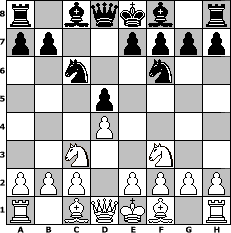 game notation in PGN-format [Event "1. Haithabu-Spiele"] [Site "www.myChess.de"] [Date "2008.08.15"] [Round "1"] [Board "3"] [White "Nightflight"] [Black "Joschi"] [ECO "B11"] [WhitemyELO "1628"] [BlackmyELO "1523"] [Result "0-1"] [TimeControl "10/2592000"] [WhiteDays "00"] [BlackDays "29"] [MyChessNo "47186"] 1. e4 c6 2. Nc3 d5 3. exd5 cxd5 4. d4 Nf6 5. Nf3 Nc6 0-1 position notation in FEN-format r1bqkb1r/pp2pppp/2n2n2/3p4/3P4/2N2N2/PPP1PPPP/R1BQKB1R - KQkq - 3 6 Captured white pieces: Captured black pieces: Click on a captured piece in order to display the desired move!