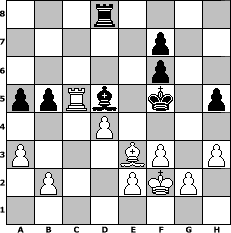 game notation in PGN-format [Event "Drachenboote auf dem Rhein"] [Site "www.myChess.de"] [Date "2009.07.15"] [Round "1"] [White "murphy12"] [Black "Greenhorn"] [ECO "B01"] [WhitemyELO "1639"] [BlackmyELO "1612"] [Result "1-0"] [TimeControl "10/1728000"] [WhiteDays "20"] [BlackDays "19"] [MyChessNo "57475"] 1. e4 d5 2. exd5 Nf6 3. c4 c6 4. Nc3 cxd5 5. cxd5 Nxd5 6. Bc4 e6 7. Nf3 Nf4 8. O-O Bc5 9. d4 Bd6 10. Ne4 O-O 11. Nxd6 Qxd6 12. Ne5 Nd5 13. Be3 Nd7 14. Nd3 N7b6 15. Bb3 Nf6 16. Rc1 Nbd5 17. Qf3 b6 18. Ne5 Bb7 19. Qh3 Rac8 20. Bc2 Rfd8 21. a3 Ne7 22. Ng4 Nf5 23. Nxf6+ gxf6 24. Bxf5 exf5 25. Qxf5 Qd5 26. Qxd5 Bxd5 27. Rfd1 Kg7 28. Kf1 Bc4+ 29. Kg1 h5 30. Rc3 Bd5 31. Rdc1 Rxc3 32. Rxc3 a5 33. f3 Kg6 34. Kf2 Kf5 35. h3 b5 36. Rc5 1-0 position notation in FEN-format 3r4/5p2/5p2/ppRb1k1p/3P4/P3BP1P/1P2PKP1/8 - - - 1 36 Captured white pieces: Captured black pieces: Click on a captured piece in order to display the desired move!