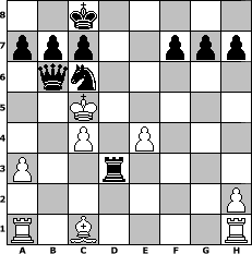 game notation in PGN-format [Event "?"] [Site "www.myChess.de"] [Date "2022.11.23"] [Round "?"] [White "lotchi"] [Black "pillepalle"] [ECO "C22"] [WhitemyELO "1227"] [BlackmyELO "1974"] [Result "0-1"] [TimeControl "10/1728000"] [WhiteDays "60"] [BlackDays "59"] [MyChessNo "128221"] 1. e4 e5 2. d4 exd4 3. Qxd4 Nc6 4. Qd2 Nf6 5. f3 d5 6. c4 d4 7. g4 Bb4 8. Nc3 Nxg4 9. fxg4 Qh4+ 10. Kd1 Bxg4+ 11. Be2 O-O-O 12. a3 dxc3 13. bxc3 Bxc3 14. Qxd8+ Rxd8+ 15. Kc2 Qf2 16. Kxc3 Bxe2 17. Nxe2 Qxe2 18. Kb3 Rd3+ 19. Ka4 Qc2+ 20. Kb5 Qb3+ 21. Kc5 Qb6# 0-1 position notation in FEN-format 2k5/ppp2ppp/1qn5/2K5/2P1P3/P2r4/7P/R1B4R - - - 8 22 Captured white pieces: Captured black pieces: Click on a captured piece in order to display the desired move!