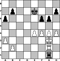 game notation in PGN-format [Event "Herbstgambit"] [Site "www.myChess.de"] [Date "2008.09.22"] [Round "1"] [White "murphy12"] [Black "Ziegert"] [ECO "D32"] [WhitemyELO "1524"] [BlackmyELO "1592"] [Result "1/2-1/2"] [TimeControl "10/2592000"] [WhiteDays "147"] [BlackDays "000"] [MyChessNo "48225"] 1. d4 d5 2. c4 e6 3. Nc3 c5 4. cxd5 cxd4 5. Qxd4 Nc6 6. Qd1 exd5 7. Qxd5 Be6 8. Qxd8+ Rxd8 9. e4 a6 10. Be3 Nb4 11. Rc1 Nf6 12. a3 Nc6 13. Nf3 Be7 14. Be2 O-O 15. O-O Ng4 16. Bb6 Rc8 17. Rfd1 Nge5 18. Nd5 Nxf3+ 19. Bxf3 Bg5 20. Be3 Bxe3 21. Nxe3 Ne5 22. Be2 Nc6 23. Nd5 Rfe8 24. Kf1 Kf8 25. f3 Ne5 26. Rc7 Bxd5 27. Rxc8 Rxc8 28. Rxd5 Nc4 29. Bxc4 Rxc4 30. Ke2 Rc2+ 31. Rd2 Rc7 32. f4 Ke7 33. g4 f6 34. h4 g6 35. Ke3 Rc1 36. Rh2 Re1+ 37. Kf3 Rf1+ 38. Rf2 Rh1 39. Kg3 Rg1+ 40. Rg2 1/2-1/2 position notation in FEN-format 8/1p2k2p/p4pp1/8/4PPPP/P5K1/1P4R1/6r1 - - - 11 40 Captured white pieces: Captured black pieces: Click on a captured piece in order to display the desired move!