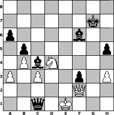 game notation in PGN-format [Event "Najdorf mit f4"] [Site "www.myChess.de"] [Date "2022.02.01"] [Round "1"] [White "Seneca"] [Black "Grubengeist"] [ECO "B93"] [WhitemyELO "1533"] [BlackmyELO "2008"] [Result "0-1"] [TimeControl "10/2592000"] [WhiteDays "122"] [BlackDays "150"] [MyChessNo "124480"] 1. e4 c5 2. Nf3 d6 3. d4 cxd4 4. Nxd4 Nf6 5. Nc3 a6 6. f4 Nbd7 7. Bd3 g6 8. O-O Bg7 9. Bd2 Nxe4 10. Nce2 Nxd2 11. Qxd2 O-O 12. c3 Qb6 13. Kh1 e5 14. fxe5 dxe5 15. Nb3 Nc5 16. Bc2 Be6 17. Qe3 Rac8 18. Ng3 Qc7 19. Ne4 Nxe4 20. Bxe4 f5 21. Bc2 Rfd8 22. Rad1 Rxd1 23. Rxd1 Bf6 24. a3 Kg7 25. Nd2 Rd8 26. Nf3 Rxd1+ 27. Bxd1 Qd6 28. Be2 h5 29. h3 e4 30. Nd4 Bf7 31. b4 b5 32. Kg1 Qe5 33. g3 g5 34. Kg2 f4 35. gxf4 gxf4 36. Qf2 f3+ 37. Bxf3 exf3+ 38. Kg1 Qg5+ 39. Kf1 Bc4+ 40. Ke1 Qc1# 0-1 position notation in FEN-format 8/6k1/p4b2/1p5p/1PbN4/P1P2p1P/5Q2/2q1K3 - - - 6 41 Captured white pieces: Captured black pieces: Click on a captured piece in order to display the desired move!
