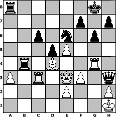 game notation in PGN-format [Event "Bremer Schl"] [Site "www.myChess.de"] [Date "2012.12.28"] [Round "1"] [White "PeterLoskarn"] [Black "bjeu"] [ECO "C29"] [WhitemyELO "2128"] [BlackmyELO "2119"] [Result "0-1"] [TimeControl "10/3456000"] [WhiteDays "57"] [BlackDays "05"] [MyChessNo "85727"] 1. e4 e5 2. Nc3 Nf6 3. f4 d5 4. fxe5 Nxe4 5. Nf3 Bc5 6. d4 Bb4 7. Bd2 c5 8. Bb5+ Nc6 9. O-O O-O 10. a3 Bxc3 11. Bxc3 Qb6 12. Bxc6 bxc6 13. dxc5 Qxc5+ 14. Bd4 Qe7 15. b4 a5 16. c3 Rb8 17. Re1 Bg4 18. Qc1 Bxf3 19. gxf3 Ng5 20. Qe3 Ne6 21. Kh1 axb4 22. cxb4 Ra8 23. Rg1 g6 24. Rad1 Qh4 25. Rd3 Rfb8 26. Rg4 Qh3 27. Rc3 Rxb4 0-1 position notation in FEN-format r5k1/5p1p/2p1n1p1/3pP3/1r1B2R1/P1R1QP1q/4P2P/7K - - - 0 28 Captured white pieces: Captured black pieces: Click on a captured piece in order to display the desired move!