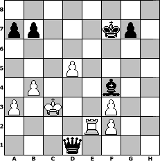 game notation in PGN-format [Event "Let\'s try with Petrov"] [Site "www.myChess.de"] [Date "2008.03.01"] [Round "1"] [White "rux"] [Black "Whiskey40"] [ECO "C42"] [WhitemyELO "1405"] [BlackmyELO "1399"] [Result "0-1"] [TimeControl "10/1728000"] [WhiteDays "57"] [BlackDays "52"] [MyChessNo "43034"] 1. e4 e5 2. Nf3 Nf6 3. Nxe5 d6 4. Nf3 Nxe4 5. d4 d5 6. Bd3 Bd6 7. O-O O-O 8. c4 Bg4 9. cxd5 f5 10. Re1 Bxh2+ 11. Kf1 Qd6 12. Bxe4 fxe4 13. Rxe4 Qa6+ 14. Ke1 Bxf3 15. gxf3 Qa5+ 16. Nc3 Nd7 17. Qd3 c5 18. Rh4 cxd4 19. Qxh7+ Kf7 20. Rxd4 Be5 21. Rd3 Rae8 22. Be3 Rh8 23. Qf5+ Nf6 24. Ke2 Bd6 25. a3 Rh5 26. Qxh5+ Nxh5 27. Ne4 Nf4+ 28. Bxf4 Bxf4 29. b4 Qc7 30. Ra2 Qd6 31. Kd1 Qg6 32. Re2 Rd8 33. Nc3 Qg1+ 34. Kc2 Rc8 35. Rd1 Rxc3+ 36. Kxc3 Qxd1 0-1 position notation in FEN-format 8/pp3kp1/8/3P4/1P3b2/P1K2P2/4RP2/3q4 - - - 0 37 Captured white pieces: Captured black pieces: Click on a captured piece in order to display the desired move!