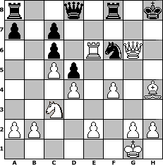 game notation in PGN-format [Event "Eine zentrale Er"] [Site "www.myChess.de"] [Date "2009.05.20"] [Round "1"] [White "murphy12"] [Black "rkoelbach"] [ECO "C67"] [WhitemyELO "1596"] [BlackmyELO "1481"] [Result "1-0"] [TimeControl "10/2592000"] [WhiteDays "90"] [BlackDays "81"] [MyChessNo "55910"] 1. e4 e5 2. Nf3 Nc6 3. Bb5 Nf6 4. O-O Nxe4 5. Re1 Nd6 6. Bxc6 bxc6 7. Nxe5 Be7 8. d4 O-O 9. c4 Bf6 10. Qc2 Bb7 11. Bf4 Ne8 12. Nc3 d5 13. c5 Bxe5 14. Rxe5 Nf6 15. Re1 Bc8 16. Bg5 Be6 17. f4 h6 18. Bh4 g6 19. Rxe6 fxe6 20. Qxg6+ Kh8 21. Qxh6+ Kg8 22. Qg6+ Kh8 23. Rxe6 1-0 position notation in FEN-format r2q1r1k/p1p5/2p1RnQ1/2Pp4/3P1P1B/2N5/PP2P1PP/6K1 - - - 0 23 Captured white pieces: Captured black pieces: Click on a captured piece in order to display the desired move!