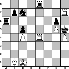 game notation in PGN-format [Event "Wanderpokal April - Chess960"] [Site "www.myChess.de"] [Date "2006.04.01"] [Round "1"] [White "bane"] [Black "Andylein1989"] [Variant "Fischerrandom"] [SetUp "1"] [FEN "rbnkqnbr/pppppppp/8/8/8/8/PPPPPPPP/RBNKQNBR w KQkq - 0 1"] [WhitemyELO "1929"] [BlackmyELO "1675"] [Result "1-0"] [TimeControl "10/86400"] [WhiteDays "04"] [BlackDays "04"] [MyChessNo "24171"] 1. d4 d5 2. e4 dxe4 3. Qxe4 c6 4. f4 Nd6 5. Qe5 f6 6. Qa5+ Bc7 7. Qe1 Nc4 8. Nd3 e5 9. fxe5 fxe5 10. Qh4+ Qe7 11. Qxe7+ Kxe7 12. dxe5 Nxe5 13. Nxe5 Bxe5 14. Bc5+ Bd6 15. Bd4 Rd8 16. Nd2 Bd5 17. Re1+ Kf7 18. g3 Ne6 19. Bxa7 c5 20. c4 Bc6 21. Bb6 Ra8 22. Ne4 Bxe4 23. Bxe4 Ra6 24. Bd5 Re8 25. Rf1+ Kg6 26. Be4+ Kh6 27. h4 Rxb6 28. g4 Rxb2 29. O-O-O Rxa2 30. Rxd6 Ra1+ 31. Bb1 Ra4 32. Rf4 g6 33. Re4 Ra6 34. g5+ Kh5 35. Rd7 Nc7 36. Rxh7# 1-0 position notation in FEN-format 4r3/1pn4R/r5p1/2p3Pk/2P1R2P/8/8/1BK5 - - - 0 36 Captured white pieces: Captured black pieces: Click on a captured piece in order to display the desired move!