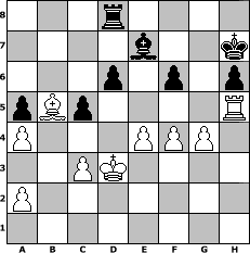 game notation in PGN-format [Event "1.a3 Anderssens Er"] [Site "www.myChess.de"] [Date "2005.04.08"] [Round "1"] [White "Devine"] [Black "VanGott"] [ECO "A00"] [WhitemyELO "1794"] [BlackmyELO "1967"] [Result "1/2-1/2"] [TimeControl "10/1728000"] [WhiteDays "17"] [BlackDays "16"] [MyChessNo "11896"] 1. a3 e5 2. e4 Nf6 3. Nc3 Nc6 4. Nf3 Be7 5. d4 exd4 6. Nxd4 Nxd4 7. Qxd4 c5 8. Qd3 d6 9. Be2 O-O 10. O-O Re8 11. Rd1 Bd7 12. Qg3 Qc8 13. Bh6 Bf8 14. f3 Nh5 15. Qh4 gxh6 16. Qxh5 Re5 17. Qh4 Qd8 18. Qxd8 Rxd8 19. Rd2 Re6 20. Bc4 Rg6 21. Nd5 b5 22. Be2 h5 23. Nf4 Bh6 24. Nxg6 Bxd2 25. Ne7+ Kg7 26. Kf2 Bf4 27. g3 Be5 28. c3 h4 29. f4 Bf6 30. Nd5 Bc6 31. Rd1 Bxd5 32. Rxd5 hxg3+ 33. hxg3 a6 34. Kf3 Kf8 35. Rh5 Kg7 36. Ke3 Rb8 37. Rd5 Rb6 38. Kd2 b4 39. Kc2 bxa3 40. bxa3 Be7 41. Bc4 a5 42. Rf5 f6 43. a4 Kg6 44. g4 h6 45. Bb5 Rb8 46. Kd3 Rg8 47. Rh5 Kh7 48. Bd7 Rd8 49. Bb5 1/2-1/2 position notation in FEN-format 3r4/4b2k/3p1p1p/pBp4R/P3PPP1/2PK4/P7/8 - - - 9 49 Captured white pieces: Captured black pieces: Click on a captured piece in order to display the desired move!