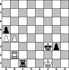 game notation in PGN-format [Event "Unter 1501"] [Site "www.myChess.de"] [Date "2020.08.24"] [Round "1"] [White "wolni55"] [Black "Seneca"] [ECO "B07"] [WhitemyELO "1416"] [BlackmyELO "1454"] [Result "0-1"] [TimeControl "10/2592000"] [WhiteDays "195"] [BlackDays "202"] [MyChessNo "119100"] 1. e4 d6 2. h3 e5 3. Nf3 Nc6 4. Bc4 h6 5. d3 Na5 6. b3 Nxc4 7. dxc4 Nf6 8. Nc3 c6 9. Bd2 Be7 10. a4 O-O 11. Qe2 a6 12. g4 Bd7 13. Nh2 Rb8 14. h4 Nh7 15. g5 g6 16. gxh6 Bxh4 17. Ng4 Bg5 18. O-O-O Bxg4 19. Qxg4 Bxd2+ 20. Rxd2 Qf6 21. f3 Qg5 22. Qxg5 Nxg5 23. Rf2 Kh7 24. f4 exf4 25. Rxf4 Rbe8 26. Rg4 Re5 27. Kb2 Rfe8 28. Ka3 Nxe4 29. Nd1 Nf6 30. Rgh4 Re1 31. Kb4 Rxh1 32. Rxh1 Re5 33. Rf1 a5+ 34. Ka3 Rf5 35. Re1 Kxh6 36. Re7 Ng4 37. Rxb7 Rf1 38. Nc3 Ne3 39. Kb2 Rf2 40. Ne4 Rxc2+ 41. Kb1 d5 42. cxd5 cxd5 43. Nf6 d4 44. Rxf7 Kg5 45. Nh7+ Kh6 46. Rd7 Rd2 47. Nf8 Nf5 48. Rd5 Rd3 49. Kc2 Rc3+ 50. Kb2 Rc8 51. Ne6 Rc6 52. Nxd4 Nxd4 53. Rxd4 Rc5 54. Rc4 Rf5 55. Rc3 g5 56. Kc2 g4 57. Rg3 Kg5 58. Kd3 Kf4 59. Rg1 Rg5 60. Ke2 Re5+ 61. Kf2 Rc5 62. Re1 Rc2+ 63. Re2 g3+ 64. Kf1 Rc3 65. Rb2 Kf3 66. b4 Rc1# 0-1 position notation in FEN-format 8/8/8/p7/PP6/5kp1/1R6/2r2K2 - - - 1 67 Captured white pieces: Captured black pieces: Click on a captured piece in order to display the desired move!