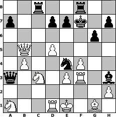 game notation in PGN-format [Event "MLN 960er langsam 2014"] [Site "www.myChess.de"] [Date "2014.01.31"] [Round "1"] [White "alibengali"] [Black "Mayerhofer"] [Variant "Fischerrandom"] [SetUp "1"] [FEN "nqnrkrbb/pppppppp/8/8/8/8/PPPPPPPP/NQNRKRBB w KQkq - 0 1"] [WhitemyELO "1629"] [BlackmyELO "1509"] [Result "1-0"] [TimeControl "10/3456000"] [WhiteDays "39"] [BlackDays "00"] [MyChessNo "92650"] 1. d4 f5 2. b3 f4 3. g3 g6 4. gxf4 Be6 5. c3 c5 6. Bg2 cxd4 7. cxd4 Qxf4 8. e3 Qh4 9. Bxb7 Nc7 10. Qe4 Bg4 11. Bxc8 Rxc8 12. Qb7 Kf7 13. Ne2 Ne6 14. Kd2 Qh5 15. f3 Qa5+ 16. b4 Qxa2+ 17. Ke1 Bh3 18. Rf2 Qa3 19. f4 Bf6 20. d5 Nc5 21. Qb5 Ne4 22. Rf3 Bc3+ 23. Nxc3 1-0 position notation in FEN-format 2r2r2/p2ppk1p/6p1/1Q1P4/1P2nP2/q1N1PR1b/7P/N2RK1B1 - - - 0 23 Captured white pieces: Captured black pieces: Click on a captured piece in order to display the desired move!