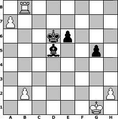 game notation in PGN-format [Event "Sommerlaune"] [Site "www.myChess.de"] [Date "2009.07.15"] [Round "1"] [White "guinan"] [Black "Leeloo"] [ECO "C00"] [WhitemyELO "1537"] [BlackmyELO "1625"] [Result "1-0"] [TimeControl "10/2592000"] [WhiteDays "152"] [BlackDays "127"] [MyChessNo "57518"] 1. e4 e6 2. d3 c5 3. Nf3 b5 4. a4 b4 5. g3 Nf6 6. Bg2 Nc6 7. O-O Be7 8. e5 Nd5 9. c4 Nc7 10. d4 cxd4 11. Nxd4 Nxe5 12. Bf4 Bf6 13. Qe2 d6 14. Nc6 Qd7 15. Nxe5 dxe5 16. Rd1 Qe7 17. Bc6+ Kf8 18. Be3 a5 19. Bxa8 Nxa8 20. Nd2 Bb7 21. Nb3 Qc7 22. Nc5 Bc6 23. Qd3 Be7 24. Na6 Qc8 25. Bc5 Ke8 26. Bxe7 Kxe7 27. Qd6+ Kf6 28. f4 exf4 29. gxf4 h6 30. Nc5 Qc7 31. Nb3 Rc8 32. Qxc7 Nxc7 33. Nxa5 Ba8 34. Nb3 Ke7 35. Rd4 e5 36. Re1 Ne6 37. Rxe5 Kf6 38. Rd6 Rxc4 39. Ra5 Be4 40. Rc5 Rc2 41. Rxc2 Bxc2 42. Nd4 Be4 43. Rb6 g6 44. Nxe6 fxe6 45. Rxb4 Bd5 46. a5 g5 47. fxg5+ hxg5 48. a6 Ke7 49. a7 Kd6 50. Rb8 1-0 position notation in FEN-format 1R6/P7/3kp3/3b2p1/8/8/1P5P/6K1 - - - 2 50 Captured white pieces: Captured black pieces: Click on a captured piece in order to display the desired move!