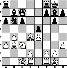 game notation in PGN-format [Event "my schach.de darf nicht einschlafen!!"] [Site "www.myChess.de"] [Date "2018.08.17"] [Round "2"] [White "peter58"] [Black "Seneca"] [ECO "A42"] [WhitemyELO "1460"] [BlackmyELO "1469"] [Result "0-1"] [TimeControl "10/1728000"] [WhiteDays "00"] [BlackDays "16"] [MyChessNo "112919"] 1. d4 d6 2. c4 Nf6 3. Nc3 g6 4. e4 Bg7 5. Be3 O-O 6. Be2 c6 7. Nf3 a6 8. O-O b5 9. Qc2 Nbd7 10. a3 Bb7 11. Rad1 Qc7 12. h3 e5 13. b4 bxc4 14. Bxc4 Nb6 15. Bb3 Nfd7 16. Qc1 exd4 17. Bxd4 Ne5 18. Nxe5 dxe5 0-1 position notation in FEN-format r4rk1/1bq2pbp/pnp3p1/4p3/1P1BP3/PBN4P/3P1PP1/2QR1RK1 - - - 0 19 Captured white pieces: Captured black pieces: Click on a captured piece in order to display the desired move!