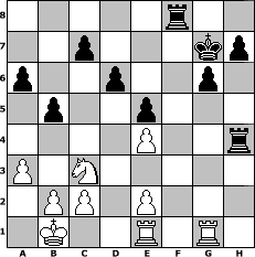 game notation in PGN-format [Event "F"] [Site "www.myChess.de"] [Date "2012.08.21"] [Round "1"] [White "Winston"] [Black "Seneca"] [ECO "B07"] [WhitemyELO "1452"] [BlackmyELO "1431"] [Result "1-0"] [TimeControl "10/864000"] [WhiteDays "10"] [BlackDays "10"] [MyChessNo "83385"] 1. e4 d6 2. h3 Nf6 3. Nc3 g6 4. Bc4 Bg7 5. d3 a6 6. a3 Nc6 7. Nf3 O-O 8. Be3 e5 9. Qd2 b5 10. Ba2 Be6 11. Bxe6 fxe6 12. Bh6 Nd4 13. Bxg7 Nxf3+ 14. gxf3 Kxg7 15. O-O-O Nh5 16. d4 exd4 17. Qxd4+ e5 18. Qe3 Qf6 19. Kb1 Qxf3 20. Qg5 Rf7 21. h4 Raf8 22. Rhg1 Qxf2 23. Qxh5 Rf4 24. Qg5 Qxh4 25. Qxh4 Rxh4 26. Rde1 1-0 position notation in FEN-format 5r2/2p3kp/p2p2p1/1p2p3/4P2r/P1N5/1PP1P3/1K2R1R1 - - - 1 26 Captured white pieces: Captured black pieces: Click on a captured piece in order to display the desired move!