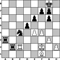 game notation in PGN-format [Event "Adventszeit"] [Site "www.myChess.de"] [Date "2022.11.28"] [Round "1"] [White "faustballer"] [Black "Mynona"] [ECO "A01"] [WhitemyELO "1560"] [BlackmyELO "1414"] [Result "0-1"] [TimeControl "10/1728000"] [WhiteDays "20"] [BlackDays "20"] [MyChessNo "128302"] 1. b3 d5 2. d4 Bf5 3. Bb2 e6 4. c3 c5 5. dxc5 Bxc5 6. b4 Bb6 7. g3 Nf6 8. Nd2 Ne4 9. Nxe4 Bxe4 10. f3 Bg6 11. Bg2 O-O 12. Nh3 a5 13. Ba3 Qf6 14. Qd2 Rc8 15. Rc1 Nd7 16. Nf4 Qe5 17. Nxg6 hxg6 18. f4 Qe3 19. Qxe3 Bxe3 20. Rc2 Bd4 21. Kd2 Bf6 22. Rhc1 Nb6 23. bxa5 Nc4+ 24. Ke1 Nxa3 25. Rb2 Bxc3+ 26. Rxc3 Rxc3 27. Rxb7 Rcc8 28. Rb3 Rxa5 29. Kf2 Nc4 30. Rc3 Rxa2 31. Bf1 Ra3 32. Rc2 Rb8 33. e4 Rb2 0-1 position notation in FEN-format 6k1/5pp1/4p1p1/3p4/2n1PP2/r5P1/1rR2K1P/5B2 - - - 1 34 Captured white pieces: Captured black pieces: Click on a captured piece in order to display the desired move!