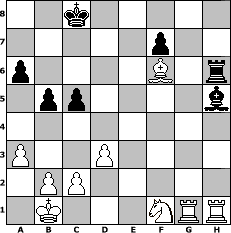 game notation in PGN-format [Event "F"] [Site "www.myChess.de"] [Date "2017.08.16"] [Round "1"] [White "muetoe"] [Black "Knight"] [ECO "C68"] [WhitemyELO "1919"] [BlackmyELO "1206"] [Result "1-0"] [TimeControl "10/2592000"] [WhiteDays "83"] [BlackDays "90"] [MyChessNo "109176"] 1. e4 e5 2. Nf3 Nc6 3. Bb5 a6 4. Bxc6 dxc6 5. d3 Qd6 6. Bd2 Bg4 7. h3 Bh5 8. a3 O-O-O 9. Qe2 Nf6 10. g4 Bg6 11. h4 h6 12. Nh2 Kb8 13. Nc3 c5 14. h5 Bh7 15. O-O-O g5 16. hxg6 Bxg6 17. f4 exf4 18. e5 Re8 19. exd6 Rxe2 20. dxc7+ Kxc7 21. Nxe2 Bg7 22. Nxf4 h5 23. gxh5 Bxh5 24. Rdg1 Bh6 25. Kb1 Bxf4 26. Bxf4+ Kc8 27. Be5 Rh6 28. Nf1 b5 29. Bxf6 1-0 position notation in FEN-format 2k5/5p2/p4B1r/1pp4b/8/P2P4/1PP5/1K3NRR - - - 0 29 Captured white pieces: Captured black pieces: Click on a captured piece in order to display the desired move!