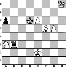 game notation in PGN-format [Event "Energiekrise"] [Site "www.myChess.de"] [Date "2022.10.29"] [Round "1"] [White "Haneken"] [Black "wolni55"] [ECO "C41"] [WhitemyELO "1143"] [BlackmyELO "1512"] [Result "1-0"] [TimeControl "10/1728000"] [WhiteDays "20"] [BlackDays "20"] [MyChessNo "127748"] 1. e4 e5 2. Nf3 d6 3. d3 Nc6 4. Be2 h6 5. O-O Qf6 6. Be3 Be7 7. Nc3 a6 8. Nd5 Qg6 9. Nxc7+ Kd8 10. Nxa8 Bh3 11. Bb6+ Kc8 12. g3 Bxf1 13. Kxf1 Qf6 14. Qd2 Bd8 15. Qc3 Kb8 16. Bxd8 Qxd8 17. Qc4 Kxa8 18. Qxf7 Qe7 19. Qxe7 Ngxe7 20. c3 g5 21. c4 Ng6 22. b3 Nb4 23. Rc1 Nxa2 24. Rc2 Nb4 25. Rc3 b6 26. h4 g4 27. Nd2 h5 28. Nb1 Rc8 29. Na3 b5 30. f3 gxf3 31. Bxf3 Ne7 32. Bxh5 Ka7 33. Bg4 Rc5 34. Ke2 d5 35. exd5 Kb6 36. d6 Nec6 37. d7 Kc7 38. h5 Nb8 39. h6 Nxd7 40. h7 e4 41. dxe4 Re5 42. cxb5+ Kb6 43. Rc6+ Ka5 44. Bxd7 Rh5 45. Bf5 Nxc6 46. bxc6 Kb6 47. e5 Kxc6 48. e6 Kd6 49. g4 Rh3 50. g5 Rxb3 51. h8=Q 1-0 position notation in FEN-format 7Q/8/p2kP3/5BP1/8/Nr6/4K3/8 - - - 0 51 Captured white pieces: Captured black pieces: Click on a captured piece in order to display the desired move!