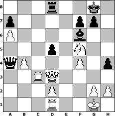 game notation in PGN-format [Event "8. Wikinger-Klubmeisterschaft"] [Site "www.myChess.de"] [Date "2012.08.01"] [Round "1"] [White "ElisabethPeters"] [Black "Grubengeist"] [ECO "D00"] [WhitemyELO "1728"] [BlackmyELO "1964"] [Result "1/2-1/2"] [TimeControl "10/1728000"] [WhiteDays "20"] [BlackDays "20"] [MyChessNo "83076"] 1. d4 d5 2. Bf4 Nf6 3. e3 c5 4. Nc3 e6 5. Nb5 Na6 6. c3 Bd7 7. Nf3 Be7 8. dxc5 O-O 9. b4 b6 10. Nbd4 bxc5 11. Bxa6 Qb6 12. Bd3 cxd4 13. Nxd4 Rac8 14. Ne2 Bb5 15. a4 Bxd3 16. Qxd3 Ne4 17. a5 Qb7 18. O-O Bf6 19. Rac1 Rfd8 20. Rfd1 e5 21. Bg3 h5 22. f3 Nxg3 23. Nxg3 h4 24. Nf5 Qc6 25. f4 exf4 26. exf4 Qa4 27. a6 Rxc3 28. Rxc3 1/2-1/2 position notation in FEN-format 3r2k1/p4pp1/P4b2/3p1N2/qP3P1p/2RQ4/3P2PP/3R2K1 - - - 0 28 Captured white pieces: ![]() ![]() ![]() ![]() ![]() ![]() ![]() ![]() ![]() ![]() ![]() ![]() ![]() ![]() ![]() Captured black pieces: ![]() ![]() ![]() ![]() ![]() ![]() ![]() ![]() ![]() ![]() ![]() ![]() ![]() ![]() ![]() Click on a captured piece in order to display the desired move!