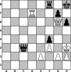 game notation in PGN-format [Event "Tigran (Wartanowitsch)Petrosjan Turnier"] [Site "www.myChess.de"] [Date "2009.08.09"] [Round "1"] [White "martinus"] [Black "Papale"] [ECO "C21"] [WhitemyELO "1834"] [BlackmyELO "1733"] [Result "1/2-1/2"] [TimeControl "10/2592000"] [WhiteDays "118"] [BlackDays "119"] [MyChessNo "58147"] 1. e4 e5 2. d4 exd4 3. c3 dxc3 4. Nxc3 Bb4 5. Bc4 Nf6 6. Qb3 Bxc3+ 7. bxc3 O-O 8. Bg5 h6 9. Bxf6 Qxf6 10. Nf3 Nc6 11. O-O Na5 12. Qb5 Nxc4 13. Qxc4 Qc6 14. Qd3 b6 15. Nd4 Qg6 16. Rfe1 Bb7 17. Nf5 Rae8 18. f3 d6 19. Rad1 Qg5 20. Qc4 Bc8 21. Qxc7 Bxf5 22. exf5 Rxe1+ 23. Rxe1 Qd2 24. Kf1 Qxa2 25. Qxd6 Qc4+ 26. Kf2 Qxc3 27. Re7 Qc2+ 28. Kg3 Qxf5 29. Rxa7 Qg5+ 30. Kh3 f5 31. Qxb6 f4 32. Qe6+ Kh8 33. Qg4 Qe5 34. Qg6 Qc3 35. Rd7 1/2-1/2 position notation in FEN-format 5r1k/3R2p1/6Qp/8/5p2/2q2P1K/4P1PP/8 - - - 7 35 Captured white pieces: Captured black pieces: Click on a captured piece in order to display the desired move!