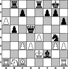 game notation in PGN-format [Event "Prätorianer"] [Site "www.myChess.de"] [Date "2023.01.04"] [Round "1"] [White "wolni55"] [Black "borsti"] [ECO "C50"] [WhitemyELO "1462"] [BlackmyELO "1331"] [Result "0-1"] [TimeControl "10/1728000"] [WhiteDays "20"] [BlackDays "20"] [MyChessNo "128880"] 1. e4 e5 2. Nf3 Nc6 3. Bc4 Bb4 4. c3 Ba5 5. a4 a6 6. d3 h6 7. b4 Bb6 8. a5 Ba7 9. b5 axb5 10. Bxb5 Nce7 11. a6 b6 12. Nxe5 Nf6 13. Qb3 O-O 14. Bc4 d5 15. Bb5 Ng4 16. Nc6 Nxc6 17. Bxc6 Rb8 18. Bxd5 Qd6 19. g3 Be6 20. Bc4 Bxc4 21. Qxc4 b5 22. Qd5 Bxf2+ 23. Ke2 Rfe8 24. h3 Qxd5 0-1 position notation in FEN-format 1r2r1k1/2p2pp1/P6p/1p1q4/4P1n1/2PP2PP/4Kb2/RNB4R - - - 0 25 Captured white pieces: Captured black pieces: Click on a captured piece in order to display the desired move!