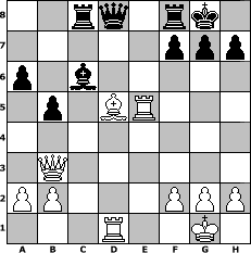 game notation in PGN-format [Event "In Memorium Michael Knopf"] [Site "www.myChess.de"] [Date "2012.04.10"] [Round "1"] [White "Sanji"] [Black "Joschi"] [ECO "B10"] [WhitemyELO "1616"] [BlackmyELO "1637"] [Result "1/2-1/2"] [TimeControl "10/2592000"] [WhiteDays "89"] [BlackDays "89"] [MyChessNo "81102"] 1. e4 c6 2. c4 d5 3. cxd5 cxd5 4. exd5 Nf6 5. Bc4 Nxd5 6. Nc3 Nf6 7. Nf3 Nc6 8. O-O e6 9. d4 Be7 10. Bf4 a6 11. Re1 O-O 12. d5 exd5 13. Nxd5 Nxd5 14. Bxd5 Bd7 15. Qe2 Bf6 16. Qc4 Rc8 17. Qb3 b5 18. Ne5 Nxe5 19. Bxe5 Bxe5 20. Rxe5 Bc6 21. Rd1 1/2-1/2 position notation in FEN-format 2rq1rk1/5ppp/p1b5/1p1BR3/8/1Q6/PP3PPP/3R2K1 - - - 2 21 Captured white pieces: Captured black pieces: Click on a captured piece in order to display the desired move!