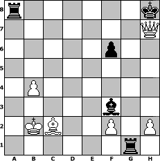 game notation in PGN-format [Event "unter uns Nr. 15, Weihnachtsturnier"] [Site "www.myChess.de"] [Date "2013.12.24"] [Round "1"] [White "lotchi"] [Black "reisender"] [ECO "A04"] [WhitemyELO "1160"] [BlackmyELO "1390"] [Result "1-0"] [TimeControl "10/864000"] [WhiteDays "23"] [BlackDays "35"] [MyChessNo "91784"] 1. Nf3 b6 2. Nc3 Bb7 3. e4 e6 4. d3 d5 5. Bg5 f6 6. Bf4 e5 7. Be3 d4 8. Bxd4 exd4 9. Nce2 Bc5 10. a3 Nc6 11. b4 Bd6 12. Nfxd4 Be5 13. c3 Nge7 14. Ne6 Qd7 15. Nxg7+ Kf8 16. d4 Bxd4 17. Nxd4 Kxg7 18. Nf5+ Qxf5 19. exf5 Nxf5 20. Qd7+ Nce7 21. Qxc7 Bd5 22. O-O-O Rac8 23. Qxa7 Rxc3+ 24. Kb2 Rb3+ 25. Kc2 Rc8+ 26. Kd2 Ra8 27. Qxb6 Rbxa3 28. Bd3 Bxg2 29. Rhg1 Nh4 30. Be4 Neg6 31. Bxg6 Nf3+ 32. Kc1 Nxg1 33. Rxg1 Ra1+ 34. Kb2 Rxg1 35. Bc2 Bf3 36. Qc7+ Kh8 37. Qxh7# 1-0 position notation in FEN-format r6k/7Q/5p2/8/1P6/5b2/1KB2P1P/6r1 - - - 0 37 Captured white pieces: Captured black pieces: Click on a captured piece in order to display the desired move!