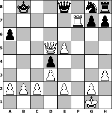 game notation in PGN-format [Event "Mannschaftsturnier der letzen Mohikan3er"] [Site "www.myChess.de"] [Date "2018.06.01"] [Round "1"] [White "Cuibono"] [Black "Rotstift10"] [ECO "B30"] [WhitemyELO "2269"] [BlackmyELO "1623"] [Result "1-0"] [TimeControl "10/2592000"] [WhiteDays "119"] [BlackDays "115"] [MyChessNo "112304"] 1. e4 c5 2. Nf3 Nc6 3. Bb5 a6 4. Bxc6 bxc6 5. O-O d5 6. d3 Bg4 7. h3 Bxf3 8. Qxf3 e5 9. Qg3 Qd6 10. Nc3 d4 11. Na4 Rb8 12. f4 Qg6 13. Qe1 exf4 14. Qa5 Bd6 15. Bxf4 Bxf4 16. Rxf4 Qd6 17. e5 Qd8 18. Qxc5 Qc7 19. Raf1 Rb5 20. Rxf7 Qxf7 21. Qxc6+ Qd7 22. Qa8+ Ke7 23. Qf8+ Ke6 24. Nc5+ Rxc5 25. Qf5+ Ke7 26. Qf7+ Kd8 27. Qf8+ Qe8 28. Qd6+ Kc8 29. Qxc5+ Kb7 30. Qd5+ Kb8 31. Rf7 1-0 position notation in FEN-format 1k2q1nr/5Rpp/p7/3QP3/3p4/3P3P/PPP1P1P1/6K1 - - - 4 31 Captured white pieces: Captured black pieces: Click on a captured piece in order to display the desired move!