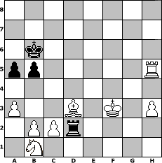 game notation in PGN-format [Event "Zum Sommeranfang"] [Site "www.myChess.de"] [Date "2017.06.11"] [Round "1"] [White "Erich"] [Black "Helmut48"] [ECO "A00"] [WhitemyELO "2137"] [BlackmyELO "2049"] [Result "1-0"] [TimeControl "10/2592000"] [WhiteDays "150"] [BlackDays "148"] [MyChessNo "108505"] 1. Nc3 d5 2. d4 e6 3. e4 Bb4 4. e5 Ne7 5. Bd2 c5 6. a3 Bxc3 7. Bxc3 Nbc6 8. Nf3 cxd4 9. Bxd4 Nf5 10. Bc3 d4 11. Bd2 Qc7 12. Bf4 f6 13. Bd3 g5 14. g4 gxf4 15. gxf5 Nxe5 16. Nxd4 Qb6 17. Qh5+ Ke7 18. O-O-O Qxd4 19. Rhg1 Nf7 20. Rg7 Rf8 21. Qf3 e5 22. Bb5 Qc5 23. Ba4 Qc7 24. Qh5 Bxf5 25. Qxf5 Rad8 26. Rxd8 Kxd8 27. Qxf6+ Qe7 28. Qf5 e4 29. Qd5+ Qd6 30. Qxd6+ Nxd6 31. Rd7+ Kc8 32. Rxd6 e3 33. Kd1 f3 34. Ke1 Rf4 35. Bb3 Rh4 36. Be6+ Kc7 37. Rd7+ Kc6 38. h3 exf2+ 39. Kxf2 a5 40. Rf7 h5 41. Rh7 Rf4 42. Rxh5 Rd4 43. Kxf3 b5 44. Bf5 Rd2 45. Be4+ Kb6 46. Bd3 1-0 position notation in FEN-format 8/8/1k6/pp5R/8/P2B1K1P/1PPr4/1N6 - - - 5 46 Captured white pieces: Captured black pieces: Click on a captured piece in order to display the desired move!