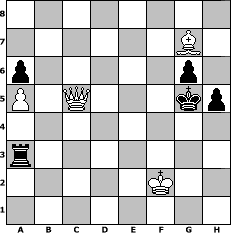 game notation in PGN-format [Event "2.No-Engine-Schachturnier"] [Site "www.myChess.de"] [Date "2013.08.15"] [Round "1"] [White "Haki"] [Black "Wulfen49"] [ECO "C55"] [WhitemyELO "1364"] [BlackmyELO "1283"] [Result "1-0"] [TimeControl "10/1728000"] [WhiteDays "20"] [BlackDays "20"] [MyChessNo "89785"] 1. e4 e5 2. Nf3 Nc6 3. Bc4 Nf6 4. Nc3 Bc5 5. O-O O-O 6. Nh4 Na5 7. Nd5 Nxc4 8. d3 Nxd5 9. dxc4 Nf4 10. g3 Ng6 11. Nxg6 fxg6 12. Qd5+ Kh8 13. Qxc5 d6 14. Qe3 Qf6 15. f4 Bh3 16. Rf2 exf4 17. Qxf4 Qxf4 18. Rxf4 Rxf4 19. Bxf4 Re8 20. Re1 a6 21. e5 dxe5 22. Bxe5 Kg8 23. Kf2 c6 24. b4 Bf5 25. c3 Bd3 26. c5 Bc4 27. a4 Rf8+ 28. Kg1 Re8 29. a5 Bd5 30. h4 h5 31. Kf2 Rf8+ 32. Kg1 Re8 33. Kf2 Rf8+ 34. Ke3 Rf3+ 35. Kd2 Rf2+ 36. Kc1 Bb3 37. Bd4 Rc2+ 38. Kb1 Rg2 39. Re8+ Kf7 40. Re3 Bd5 41. Kc1 Rg1+ 42. Kd2 Rg2+ 43. Re2 Rxg3 44. Rf2+ Kg8 45. Be5 Rh3 46. Bd6 Bf7 47. Rf4 Rh2+ 48. Ke1 Rh1+ 49. Kf2 Rh2+ 50. Kg1 Rc2 51. Rf3 Rc1+ 52. Kh2 Rc2+ 53. Kg3 Rc1 54. Re3 Rg1+ 55. Kf2 Rh1 56. Re7 Rxh4 57. Rxb7 Rh3 58. Rb8+ Kh7 59. Rb7 Bc4 60. Rb6 Rxc3 61. Rxc6 Bb5 62. Rc7 Rc4 63. Ke3 Rxb4 64. Bf8 Kh6 65. Bxg7+ Kg5 66. Re7 Rb3+ 67. Kf2 Bd3 68. c6 Bf5 69. c7 Ra3 70. Re5 Kf4 71. Rxf5+ Kxf5 72. c8=Q+ Kg5 73. Qc5+ 1-0 position notation in FEN-format 8/6B1/p5p1/P1Q3kp/8/r7/5K2/8 - - - 2 73 Captured white pieces: Captured black pieces: Click on a captured piece in order to display the desired move!