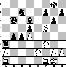 game notation in PGN-format [Event "Wrixum - Open die XIII"] [Site "www.myChess.de"] [Date "2016.09.28"] [Round "1"] [White "reisinger"] [Black "Grubengeist"] [ECO "D10"] [WhitemyELO "1474"] [BlackmyELO "1933"] [Result "0-1"] [TimeControl "10/2592000"] [WhiteDays "30"] [BlackDays "30"] [MyChessNo "105083"] 1. d4 d5 2. c4 c6 3. c5 e5 4. e3 exd4 5. exd4 Nf6 6. Be3 b6 7. b4 a5 8. cxb6 axb4 9. Nd2 Qxb6 10. Nb3 Bd6 11. Bd3 O-O 12. Nf3 Ng4 13. Qc1 Ba6 14. Bf5 Nxe3 15. fxe3 Re8 16. Qc2 Rxe3+ 17. Kf2 Re2+ 18. Qxe2 Bxe2 19. Kxe2 Na6 20. Rhf1 c5 21. Kf2 c4 22. Nc1 Nc7 23. Kg1 Ra3 24. Ne2 g6 0-1 position notation in FEN-format 6k1/2n2p1p/1q1b2p1/3p1B2/1ppP4/r4N2/P3N1PP/R4RK1 - - - 0 25 Captured white pieces: Captured black pieces: Click on a captured piece in order to display the desired move!