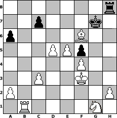game notation in PGN-format [Event "Fr"] [Site "www.myChess.de"] [Date "2008.02.07"] [Round "1"] [White "UPS"] [Black "Schefsche"] [ECO "A04"] [WhitemyELO "1591"] [BlackmyELO "1421"] [Result "1-0"] [TimeControl "10/2592000"] [WhiteDays "112"] [BlackDays "102"] [MyChessNo "42396"] 1. Nf3 Nc6 2. d4 d5 3. Nc3 Nf6 4. e3 Bg4 5. Be2 Bxf3 6. Bxf3 e5 7. dxe5 Nxe5 8. Bxd5 Bb4 9. Bxb7 Bxc3+ 10. bxc3 Qxd1+ 11. Kxd1 Rd8+ 12. Ke2 O-O 13. Ba3 Rfe8 14. Bc5 Ne4 15. Bxe4 Nc4 16. Rhd1 Rxd1 17. Rxd1 h6 18. Bd3 Nb2 19. Rb1 Nxd3 20. cxd3 a6 21. f4 Kh7 22. e4 f5 23. e5 g5 24. g3 gxf4 25. gxf4 Rg8 26. Kf3 h5 27. d4 h4 28. d5 Rc8 29. Be7 Kg7 30. Bxh4 Rh8 31. Bf6+ 1-0 position notation in FEN-format 7r/2p3k1/p4B2/3PPp2/5P2/2P2K2/P6P/1R4N1 - - - 2 31 Captured white pieces: ![]() ![]() ![]() ![]() ![]() ![]() ![]() ![]() ![]() ![]() ![]() ![]() ![]() ![]() ![]() Captured black pieces: ![]() ![]() ![]() ![]() ![]() ![]() ![]() ![]() ![]() ![]() ![]() ![]() ![]() ![]() ![]() Click on a captured piece in order to display the desired move!