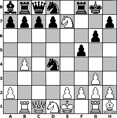 game notation in PGN-format [Event "Ausblick Herbst 2015"] [Site "www.myChess.de"] [Date "2015.08.11"] [Round "1"] [White "Erich"] [Black "espero"] [Variant "Fischerrandom"] [SetUp "1"] [FEN "brqnknrb/pppppppp/8/8/8/8/PPPPPPPP/BRQNKNRB w KQkq - 0 1"] [WhitemyELO "2098"] [BlackmyELO "2033"] [Result "1-0"] [TimeControl "10/2592000"] [WhiteDays "30"] [BlackDays "27"] [MyChessNo "100064"] 1. g3 g6 2. Nfe3 f5 3. c3 e5 4. b4 Nfe6 5. d4 exd4 6. cxd4 Bxd4 7. Bxd4 Nxd4 8. Nd5 O-O 9. Ne7+ 1-0 position notation in FEN-format brqn1rk1/ppppN2p/6p1/5p2/1P1n4/6P1/P3PPPP/1RQNK1RB - KQ - 3 9 Captured white pieces: ![]() ![]() ![]() ![]() ![]() ![]() ![]() ![]() ![]() ![]() ![]() ![]() ![]() ![]() ![]() Captured black pieces: ![]() ![]() ![]() ![]() ![]() ![]() ![]() ![]() ![]() ![]() ![]() ![]() ![]() ![]() ![]() Click on a captured piece in order to display the desired move!