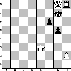 game notation in PGN-format [Event "Pott Schach - Glück Auf die xte."] [Site "www.myChess.de"] [Date "2020.11.05"] [Round "2"] [White "beowulf"] [Black "Achimkogge"] [ECO "A36"] [WhitemyELO "1399"] [BlackmyELO "1524"] [Result "1-0"] [TimeControl "10/2592000"] [WhiteDays "180"] [BlackDays "175"] [MyChessNo "119801"] 1. c4 c5 2. Nc3 Nc6 3. g3 b6 4. Bg2 a6 5. Nf3 e6 6. O-O Bd6 7. d4 cxd4 8. Nxd4 Nge7 9. Nxc6 dxc6 10. Bg5 h6 11. Bd2 b5 12. cxb5 Rb8 13. bxc6 Rxb2 14. Na4 Rb5 15. Bc3 e5 16. Rb1 Rd5 17. Qc2 Rb5 18. e3 Rxb1 19. Rxb1 Bf5 20. e4 Be6 21. Bf1 Nxc6 22. Bxa6 O-O 23. Nb6 f6 24. a4 Nb8 25. Bd3 Bc5 26. a5 Nc6 27. Kg2 Rf7 28. Bxe5 Nxe5 29. Qxc5 Nxd3 30. Qc6 Re7 31. Nd5 Bxd5 32. Qxd5+ Qxd5 33. exd5 Re2 34. a6 Rxf2+ 35. Kh3 Ra2 36. Rb6 Nc5 37. d6 Nd7 38. Rc6 Kh7 39. Rc7 Nb6 40. d7 Rd2 41. a7 h5 42. g4 Rd3+ 43. Kh4 Kh6 44. gxh5 Rd4+ 45. Kg3 Kxh5 46. Rb7 Na8 47. Rb8 Rd3+ 48. Kf2 Rxd7 49. Rxa8 g5 50. Rh8+ Kg6 51. a8=Q Rd2+ 52. Ke3 Rd5 53. Qxd5 Kg7 54. Qg8# 1-0 position notation in FEN-format 6QR/6k1/5p2/6p1/8/4K3/7P/8 - - - 2 54 Captured white pieces: Captured black pieces: Click on a captured piece in order to display the desired move!