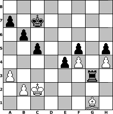 game notation in PGN-format [Event "Alapin-Diemer-Gambit Thematurnier"] [Site "www.myChess.de"] [Date "2010.01.23"] [Round "1"] [White "neve"] [Black "Lohl"] [ECO "C01"] [WhitemyELO "1422"] [BlackmyELO "1458"] [Result "0-1"] [TimeControl "10/2592000"] [WhiteDays "120"] [BlackDays "097"] [MyChessNo "62552"] 1. e4 e6 2. d4 d5 3. Be3 dxe4 4. Nc3 Nf6 5. Nge2 Bd7 6. d5 exd5 7. Nxd5 Bd6 8. Bg5 Be5 9. Ng3 Be6 10. Nxf6+ gxf6 11. Qxd8+ Kxd8 12. O-O-O+ Kc8 13. Bh4 f5 14. Kb1 Nd7 15. Bb5 c6 16. Ba4 Nc5 17. Bb3 Nxb3 18. cxb3 Rg8 19. Nh5 f4 20. g3 Bg4 21. Nf6 Bxf6 22. Bxf6 Bf3 23. gxf4 Bxh1 24. Rxh1 Rg6 25. Bc3 Rg2 26. Re1 f5 27. Bd4 Kc7 28. h4 Rd8 29. Be3 b6 30. Rh1 c5 31. a3 h5 32. Kc2 Rd3 33. Rh3 Rxf2+ 34. Bxf2 Rxh3 35. Kd2 Rxb3 36. Kc2 Rf3 37. Bg1 Rg3 0-1 position notation in FEN-format 8/p1k5/1p6/2p2p1p/4pP1P/P5r1/1PK5/6B1 - - - 4 38 Captured white pieces: Captured black pieces: Click on a captured piece in order to display the desired move!