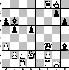 game notation in PGN-format [Event "Neues Jahr 2020"] [Site "www.myChess.de"] [Date "2020.01.01"] [Round "1"] [White "Joschi"] [Black "pepo47"] [ECO "B92"] [WhitemyELO "1596"] [BlackmyELO "2127"] [Result "0-1"] [TimeControl "10/2592000"] [WhiteDays "30"] [BlackDays "30"] [MyChessNo "116759"] 1. e4 c5 2. Nf3 d6 3. d4 cxd4 4. Nxd4 Nf6 5. Nc3 a6 6. Be2 e5 7. Nf3 h6 8. O-O Be7 9. h3 Be6 10. Be3 Nbd7 11. Qd2 Rc8 12. Rfd1 Nc5 13. Bd3 O-O 14. a3 Qc7 15. Rac1 Qc6 16. Bxc5 Qxc5 17. Re1 Qc6 18. Qe3 Bd8 19. Red1 b5 20. Kh2 Ba5 21. Nd5 Nxd5 22. exd5 Bxd5 23. Nd2 Be6 24. Nf3 Bb6 25. Qe2 f5 26. Nd2 e4 27. Nxe4 fxe4 28. Bxe4 d5 29. Bf3 Rce8 30. Qd2 Qd6+ 31. Kg1 Rxf3 32. gxf3 Qg3+ 33. Kh1 Qxf3+ 34. Kg1 Rf8 35. Rf1 Bxh3 0-1 position notation in FEN-format 5rk1/6p1/pb5p/1p1p4/8/P4q1b/1PPQ1P2/2R2RK1 - - - 0 36 Captured white pieces: Captured black pieces: Click on a captured piece in order to display the desired move!